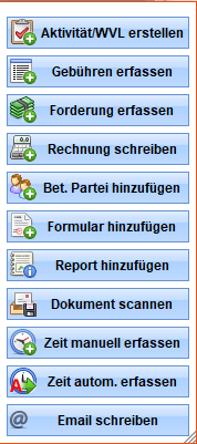 Die Felder, die Sie bei der Einrichtung mit dem Häkchen in Spalte "aL" (für automatisches Laden) versehen haben, werden bei neuen Akten automatisch eingetragen. Zusätzliche Felder können Sie mit den Schaltflächen ganz unten hinzufügen bzw. löschen. Dazu müssen Sie sich im Bearbeitungsmodus der Akte befinden.