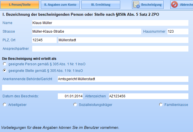 Erstellt die Bescheinigung für das Pfändungsschutzkonto.