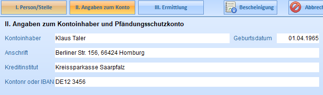 In diesem Fenster machen Sie Angaben zum P-Konto.