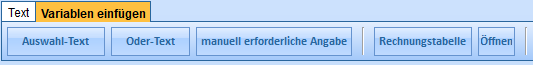 d) Variable für die Rechnungstabelle: Drücken Sie die Schaltfläche, um die entsprechende Variable an der Position des Cursors einzufügen. Diese Variable kann nur einmal im Text vorkommen.