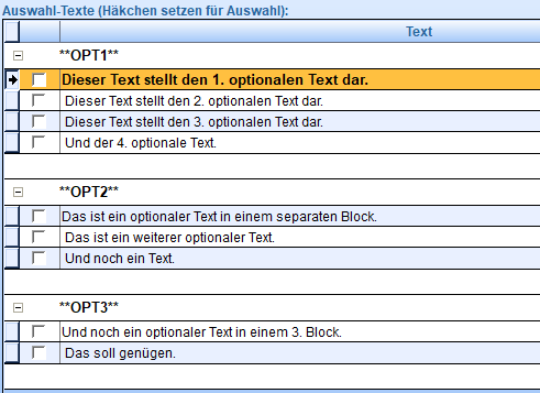 Das ist ein optionaler Text in einem separaten Block. **OPT2** Das ist ein weiterer optionaler Text. **OPT2** Und noch ein Text.
